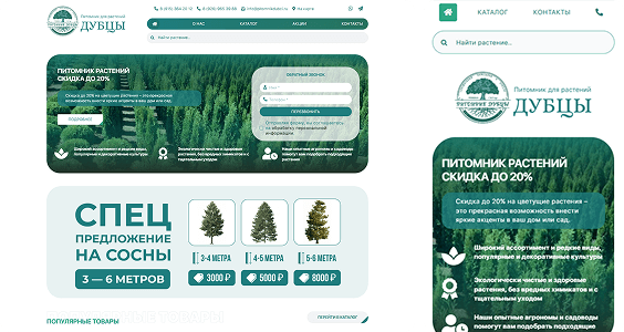 Сайт каталог для Питомника растений. Фильтр, описание продукции, подача заявки.
