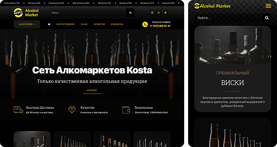 Сайт каталог одной из крупнейших сетей Алкомаркетов в городе Астана. Информация о продукции, компании. Каталог и заявки.