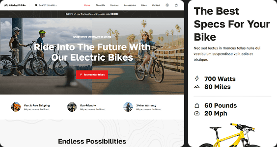 Сайт по электровелосипедам для commuting, путешествий и фитнеса (модели Thunderbolt, EcoCruiser).