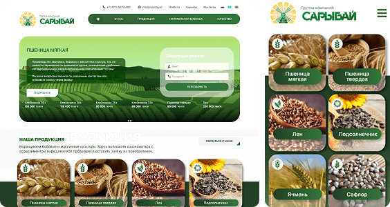 Разработка корпоративного информационного портала Группы компаний Сарыбай. Производитель и поставщик сельскохозяйственной продукции Казахстана.